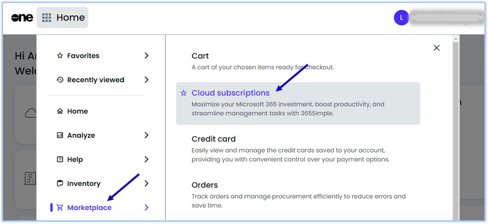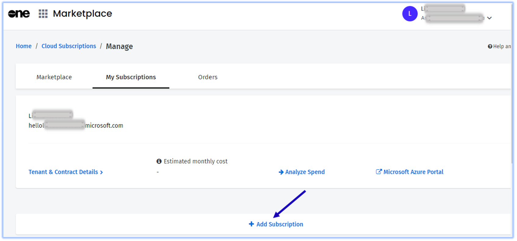 4 | Click on Marketplace, then click on Cloud subscriptions. ![]() |