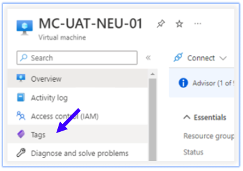 4 | Under the virtual machine Overview, click on Tags. ![]() |